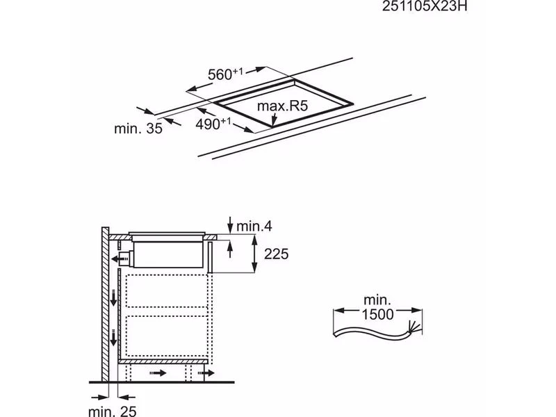 - Beépítési méretek (Mag*Szél*Mély, mm): 225x560x490