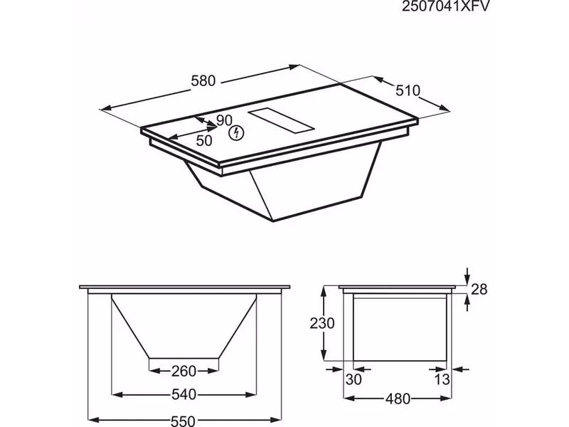 - Főzőlap típusa: Indukciós főzőlap beépített páraelszívóval