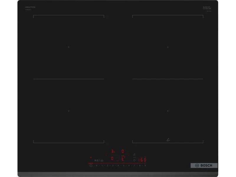 CombiInduction üvegkerámia főzőlap - Serie6 - Home Connect & Hob-Hood Control - 60cm - Elöl csiszolt kivitel - 4 indukciós főzőzóna, ebből oldalanként 2-2 összekapcsolható CombiInduction zóna - DirectSelect - PerfectFry hőmérsékletvezérlés - Timer, jelzőóra - Szüneteltetés funkció - ReStart - QuickStart - PowerBoost minden zónához - Power Management - 7,4kW max. teljesítmény - 2 fázisra köthető