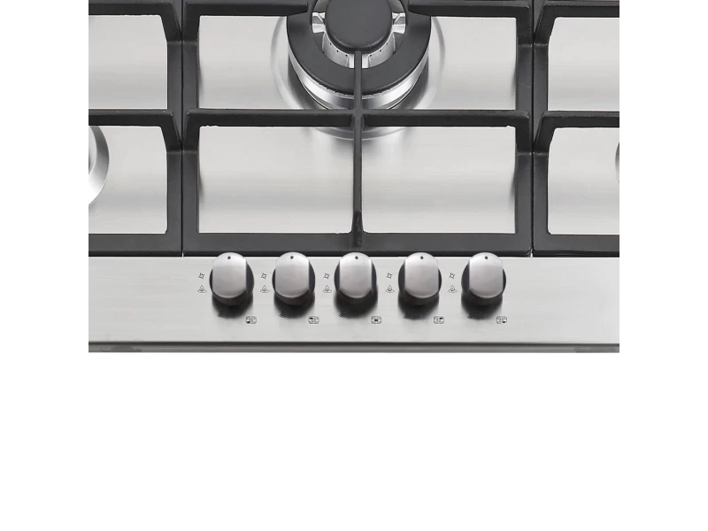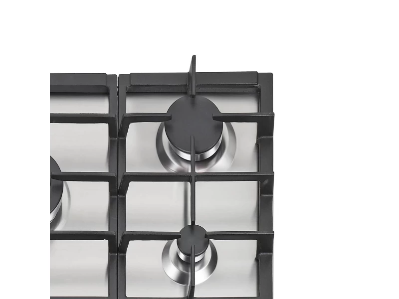 5 gázégő égésbiztosítóval, automata szikragyújtás, inox felület, öntöttvas rács, 60 cm széles szekrénybe építhető, teljesítmény: 11 kW, 2 db közepes gázégő - 2x1,75 kW, 1 db tripla koronás WOK égő - 3,5 kW, 1 db nagy égő - 3 kW, 1 db normál égő - 1 kW