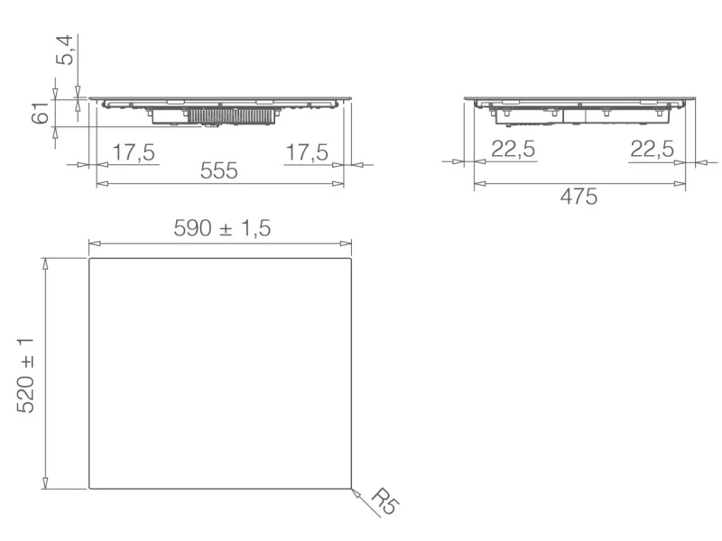 | Szélesség: 45 - 69 cm | Típus: Indukciós főzőlap |