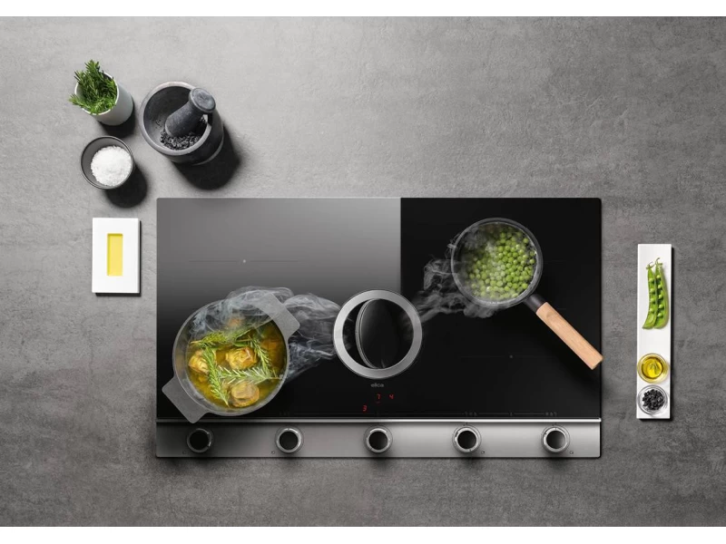 Ready to play? Végre teljesen ergonomikus és intuitív módon főzhet. Mindig kézreeső, a legmodernebb funkciókkal és vezérlőkkel rendelkező különleges markolatú, analóg touch & feel gombok jellemzik ezt a páraelszívós főzőlapot mely elválasztja a főzőzónát a vezérlőfelülettől (válaszfallal védett). A középső üveg- és fémcsap elrejti a szívóterületet, ami a terméknek különleges hatású linearitást kölcsönöz. A levegő mindig tiszta az újonnan kifejlesztett kombinált szag- zsír és nedvességszűrőnek köszönhetően, amelyet úgy terveztek, hogy karbantartása egyszerű legyen. A legkorszerűbb motorok még maximális teljesítmény mellett is alacsony zajszintet és alacsony fogyasztást biztosítanak. Többek között vajat vagy csokoládét olvaszthat, anélkül, hogy folyamatosan kevergetnie kellene; optimalizálhatja a lassú főzést; a heves forralás során elkerülheti a forró víz kifolyását. Továbbá a nagyobb edényekben történő egyenletes főzés érdekében két szomszédos főzőzónát is aktiválhat egyszerre.