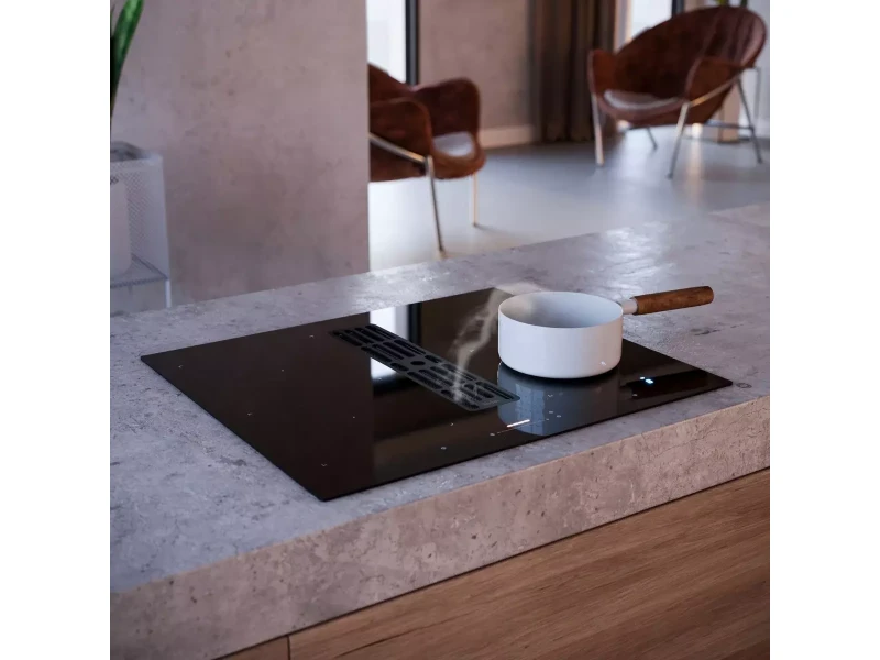 A beépített Flat Motor on board motor 800 m³/h maximális légszállítási teljesítményt biztosít, miközben 53–63 dB(A) közötti zajszinten működik, így a főzés közben is megmarad a kellemes légkör a konyhában.