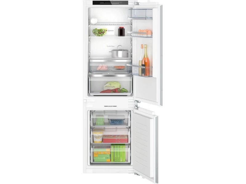 Beépíthető kombinált hűtő/fagyasztó - Laposzsanér - NoFrost - 187+76 l nettó űrtartalom - 177,2x56x55cm - Energiaosztály: D - Digitális kijelző - TouchControl vezérlés - kétkörös vezérlés - LED világítás - Fresh Safe fiók - szuperhűtés - szuperfagyasztás - Alarm funkció