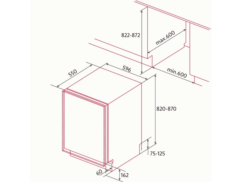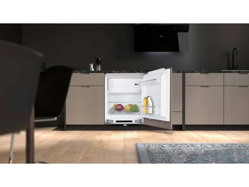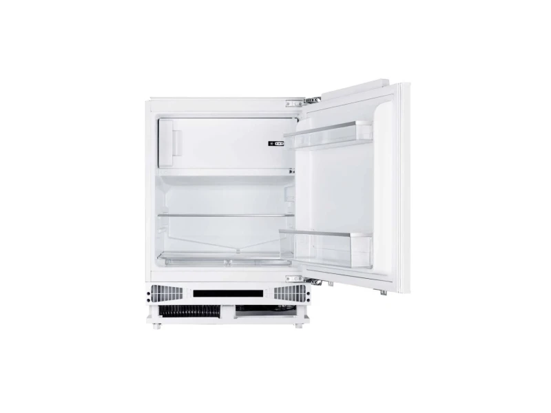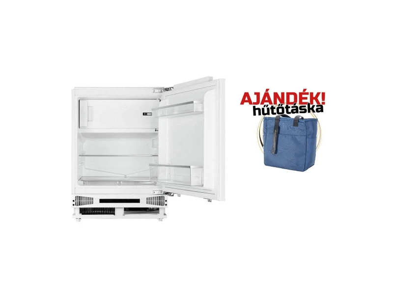 pult alá építhető hűtőszekrény belső fagyasztóval, LED világítás, 111 literes, 95 literes normál hűtőrész, 16 literes fagyasztó, elektronikus hőmérséklet szabályozás, 1 db biztonsági üvegpolc, 2 db polc az ajtón, 1 db zöldségtartó fiók, belső fagyasztórész nyitható ajtóval, nyitott ajtó riasztás, fogyasztás: 147 kWh/év, fagyasztó kapacitás: 2,6 Kg/24 óra, zajszint: 40 dB(A), megfordítható ajtónyitás