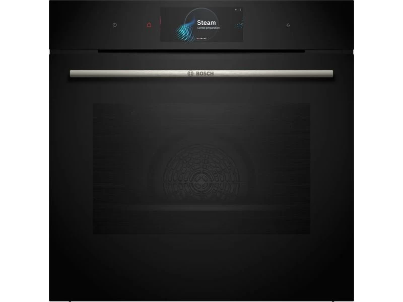 Beépíthető gőzsütő - Serie8 - Fekete - HomeConnect - 23 funkció (15 sütési mód, 4 gőzfunkció, 4 sütési mód hozzáadott gőzzel) - TFT TouchDisplay Pro - EcoClean Direct (oldalfalak, hátfal, tető) - DishAssist sütősegéd - PerfectBake Plus sütőszenzor - PerfectRoast Plus maghőmérő - SteamPlus gőzölés - SteamBoost gőzlöket - AirFry olaj nélküli sütés - LED világítás - SoftMove ajtó - 71 literes sütőtér - A+ energiaosztály