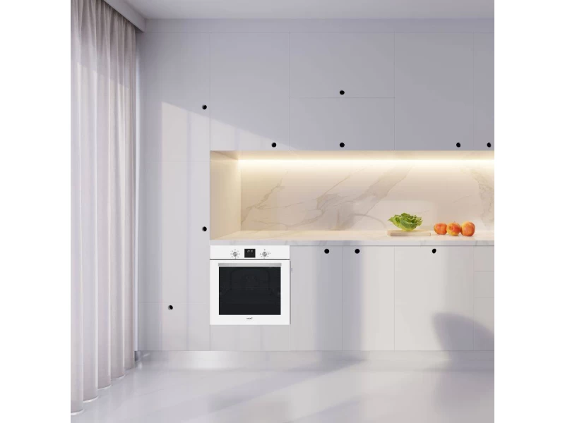 7 sütőfunkció, érintővezérléses programozható digitális óra, XL-es 80 literes sütőtér, sütővilágítás, állítható hőfok 40-240 ºC, 6 szint a tálcák elhelyezéséhez, dupla üvegezésű sütőajtó, fehér üveg, 1 db mély tepsi (5 cm), 1 db normál tepsi, 1 db grillrács, 1 db kihúzható sütősín, "A" energiaosztály