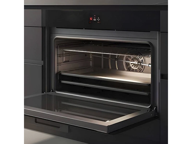 Tágas, vezérelhető, ultra fekete dizájn. Lenyűgöző. 90x60 cm-es sütő színes TFT kijelzővel, könnyen tisztítható és nagyon egyszerűen kezelhető. A teljesen fekete megjelenést fokozza a csiszolt üveg, amely egy olyan tökéletes hőszigetelésű sütőtérrel párosul, amely még a legmagasabb hőmérsékleten (300 C) is képes állandó főzési hőmérsékletet fenntartani. Méretei lehetővé teszik, hogy különböző ételeket főzzön egyszerre, optimalizálva az időt és a fogyasztást. Kondenzátum-szabályozással és szondával is fel van szerelve az edények belső hőmérsékletének ellenőrzésére. 7 évre kiterjesztett garancia. A energiaosztály.