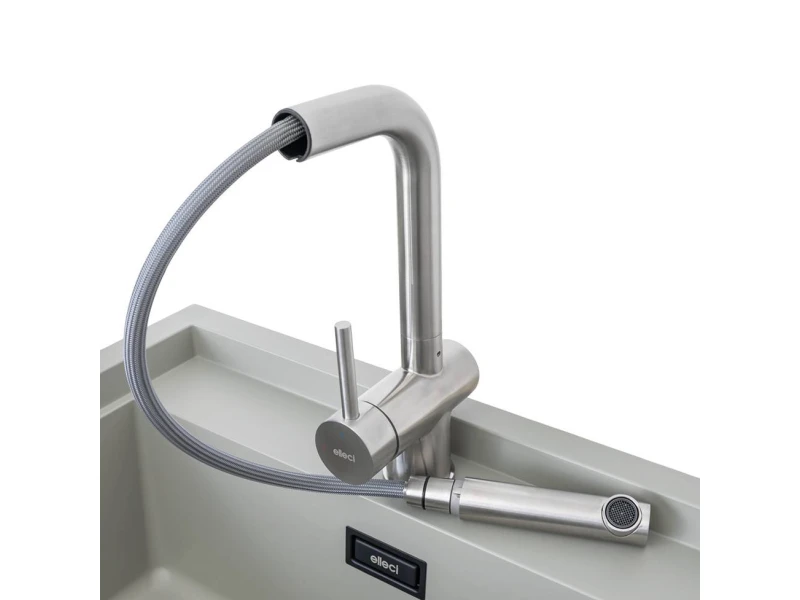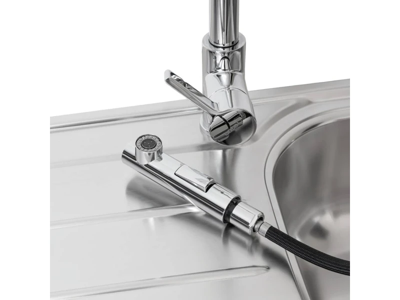 A Cata csaptelep praktikus, kihúzható kifolyószárral rendelkezik, amelynek köszönhetően a csap szárát használat közben könnyedén kihúzhatja a helyéről. Ez a funkció különösen hasznos, amikor edényeket szeretne öblíteni, a mosogatót tisztítani, vagy a vizet célzottan irányítani. A kihúzható kifolyószár nagyobb mozgásteret biztosít, így a mindennapi konyhai feladatokat kényelmesebbé és rugalmasabbá teszi az Ön számára.