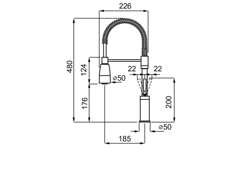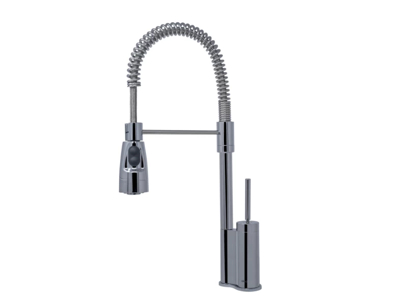 Egykaros félprofesszionális, ívelt, magas, kerámiabetétes csaptelep, oldalsó szabályzóval, forgatható kifolyócsővel, flexibilis zuhanyfejjel, normál beépítéssel, Ø35 mm-es furattal. 3-féle színben rendelhető.