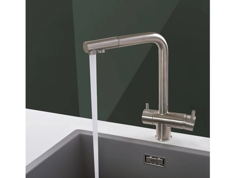 Az ELLECI szűrőrendszer friss, tisztított víz forrásává változatja konyhai csapját. A szűrőrendszerrel felszerelt csaptelep csökkenti a nehézfémek, a klór és a vízkő mennyiségét a csapvízben; használata könnyű, mivel a szűrő közvetlenül a vízellátó csaphoz csatlakozik, és szűrt vizet biztosít, amikor csak szüksége van rá.