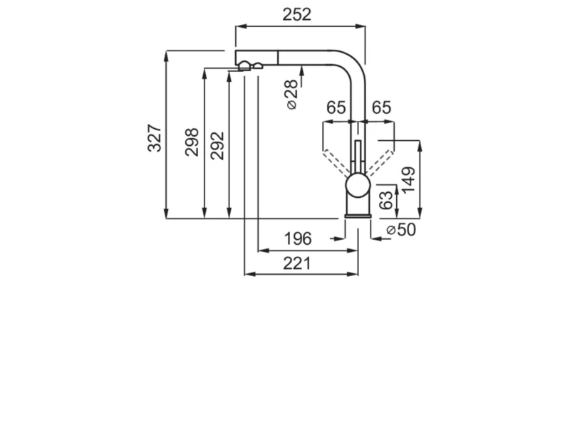 Egykaros álló csaptelep, két elosztó szeleppel, kerámiabetéttel, oldalsó szabályzókkal, elforgatható kifolyócsővel, víztisztító rendszerekhez is alkalmazható.