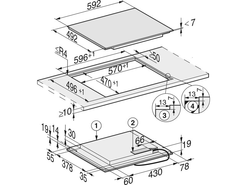 Csak síkba építhető, ComfortSelect, 2 kerek főzőzóna, 1 PowerFleX felület, Con@ctivity