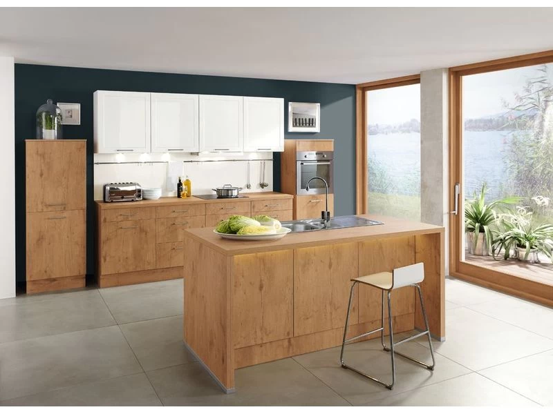 - 11 alsószekrény-szélesség forgóajtókkal, fiókokkal és kihúzható elemekkel