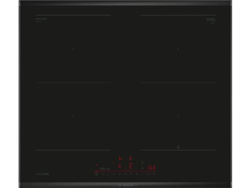 CombiInduction üvegkerámia főzőlap - accent line - Serie6 - Home Connect & Hob-Hood Control - 60cm - KomfortProfil - 4 indukciós főzőzóna, ebből oldalanként 2-2 összekapcsolható CombiInduction zóna - DirectSelect - PerfectFry hőmérsékletvezérlés - Timer, jelzőóra - Szüneteltetés funkció - ReStart - QuickStart - PowerBoost minden zónához - Power Management - 7,4kW max. teljesítmény - 2 fázisra köthető