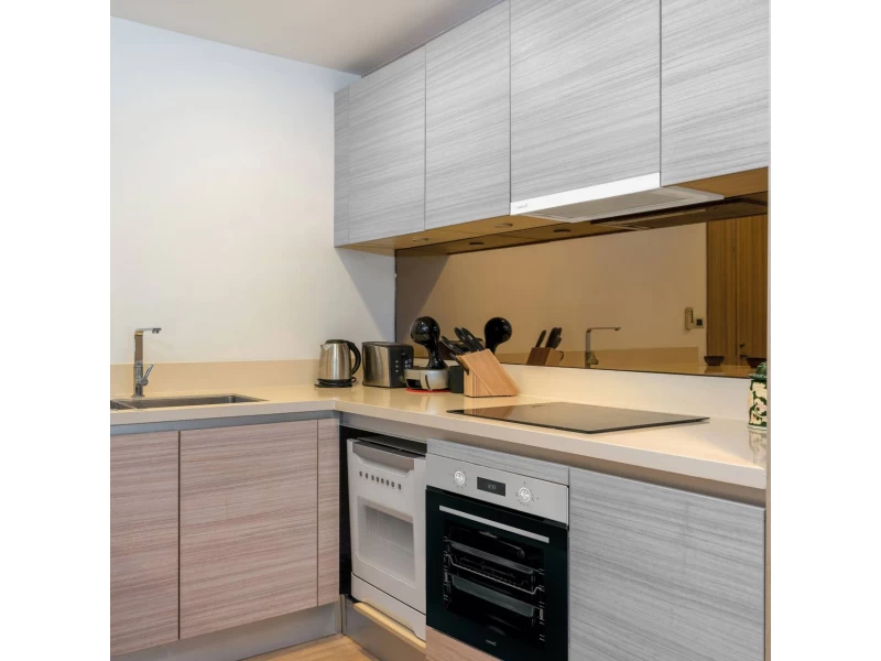 Előlapja levehető, így akár konyhabútor anyagával azonos előlap is felszerelhető.