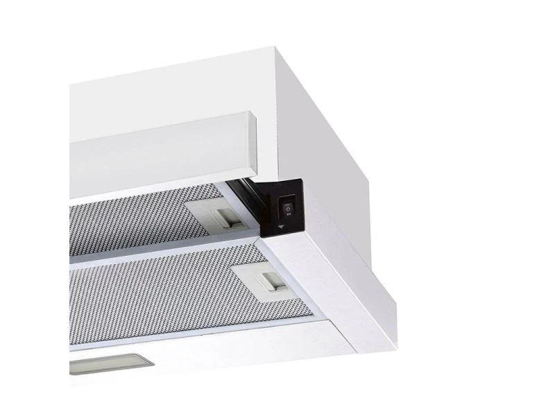 A páraelszívó egyszerűen kezelhető, kétfokozatú mechanikus billenőkapcsolóval rendelkezik, amely lehetővé teszi a szívóerő manuális szabályozását az aktuális főzési igényeknek megfelelően. Az alacsonyabb fokozat ideális a kisebb pára vagy szag esetén, míg a magasabb fokozat intenzívebb szellőzést biztosít a gyorsabb levegőtisztítás érdekében.