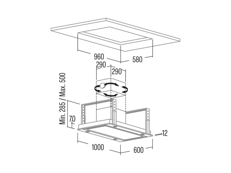 Cata Isla Sirin GWH mennyezetbe építhető elszívó, forgatható extra csendes BT3 motorral, így minden oldalon van kivezetési lehetőség. Vezérlés távvezérlővel történik (3+1 TURBO fokozat). A készülék rendelkezik zsírszűrő-telítettség kijelzővel, ami jelzi, hogy a zsírszűrőket tisztítani kell. Kivehető, mosható fém zsírfilter. Az elszívónak a középső panelje fehér üveg, a keretrész fehérre festett acél.