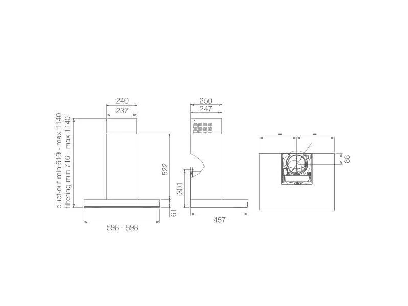 A fekete üveg előlap alumíniumkeretbe van foglalva, ami kiemeli a készülék vonalait. A páraelszívó továbbá távvezérelhető: alkalmazással vagy hangvezérléssel bluetooth kapcsolattal és az épp használatban lévő Elica főzőlapok teljesítményének megfelelően állítja be magát. Maximális sebességnél 770 m³/h kapacitással kiváló teljesítményű szívórendszerrel rendelkezik. Az érintésvezérlőt az üveg elrejti, a LED-ek alacsony energiafogyasztással világítják meg a főzőlapot.