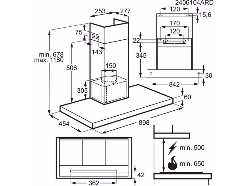 - Minimum távolság elektromos főzőlaptól (cm): 50