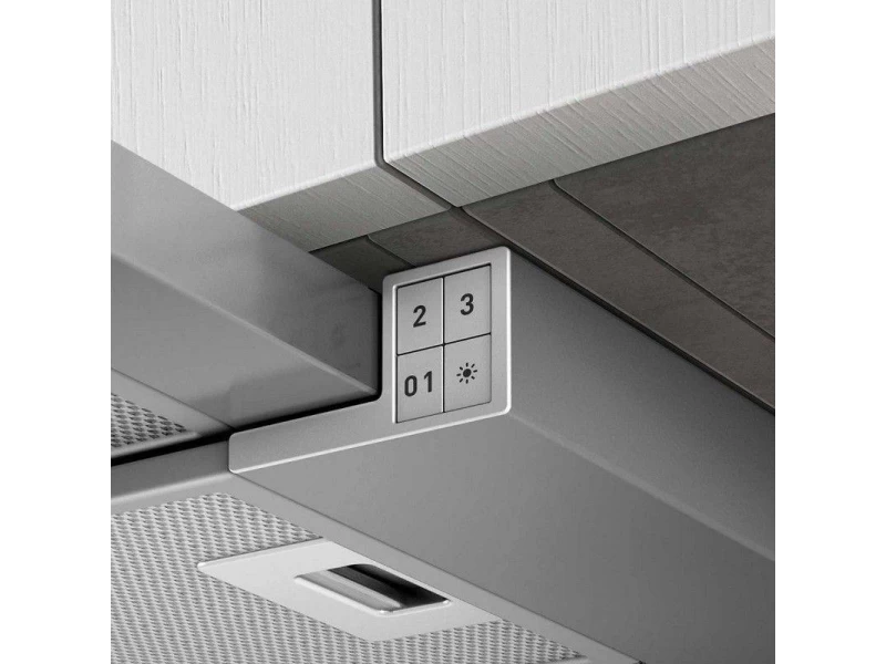 Vezérlése mechanikus (3 fokozatú billenőkapcsoló), illetve külön található világítás kapcsoló, amely az energiatakarékos LED világítást kapcsolja. A motor és a világítás csak akkor működik ha az előlapot kihúzza. A főzés befejezése után javasolt az elszívót kikapcsolni.