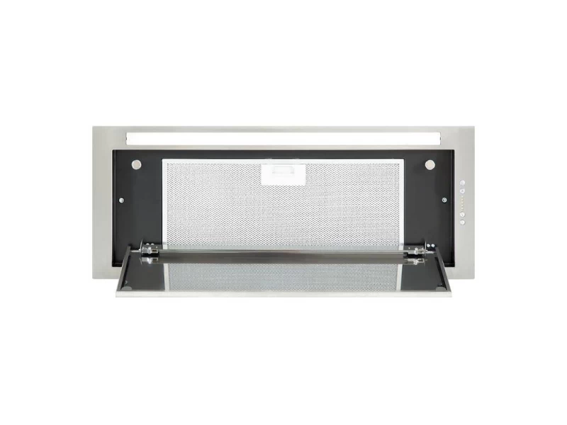 A fali egységbe történő beépítésre tervezett, beépített páraelszívó nagy teljesítményt és alacsony fogyasztást kínál.