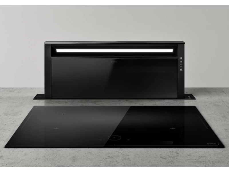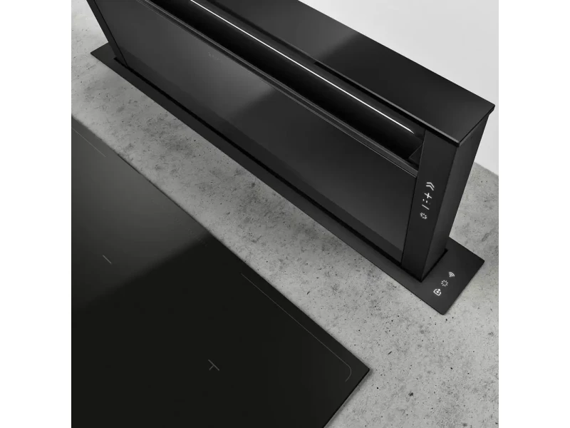 Az Elica GETUP BL MAT/A/90 pultba építhető páraelszívó a konyhai komfort új dimenzióját képviseli. Letisztult fekete felülete, rozsdamentes acél elemei és öntöttvas hatású részletei harmonikusan illeszkednek bármilyen konyhai környezetbe. A készülék diszkréten simul bele a munkapultba, majd a motoros automatika segítségével bekapcsoláskor elegánsan kiemelkedik, hogy közvetlenül a főzés helyén biztosítsa a hatékony elszívást. Kikapcsoláskor pedig visszasüllyed, így a konyha megőrzi rendezett, letisztult megjelenését.