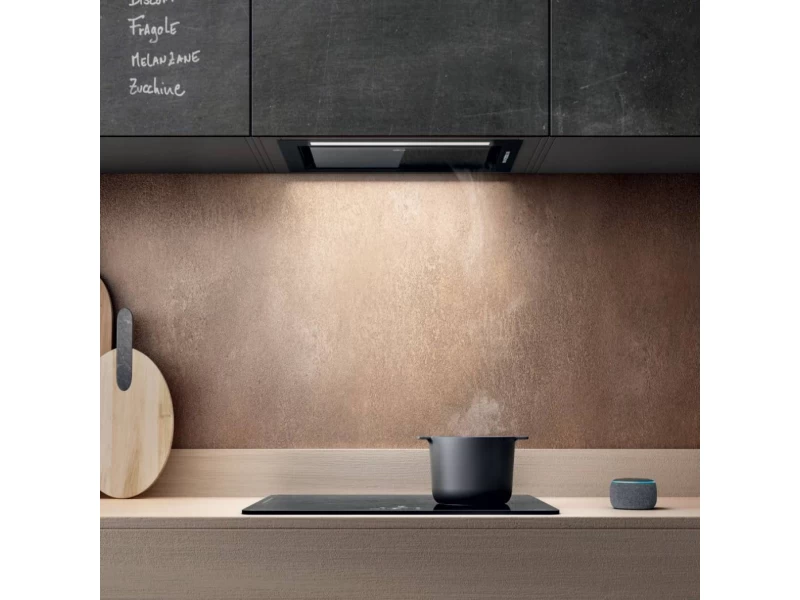 Ez a perimetrikus szívórendszerrel rendelkező páraelszívó teljesen eltűnik a fali egységben, ugyanakkor egyetlen gombnyomással aktiválható. Szagtalanító szűrőkkel van felszerelve, amelyek akár 3 évig is tarthatnak, csökkentve a környezetterhelő hatást. Egy jelzőfény figyelmezteti Önt, ha eljött az ideje a tisztításnak, regenerálásnak vagy cserének.