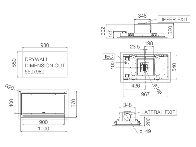 Elica HILIGHT-X H16 IX/A/100 mennyezetbe építhető páraelszívó