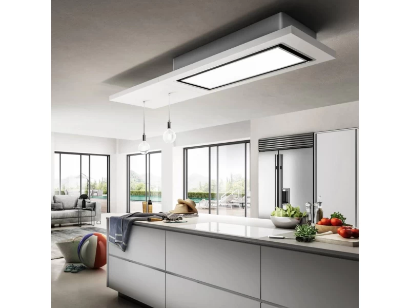 A stílus, a méret és a további polcok az Ön kívánságai szerint testre szabhatók. Kétféle anyag közül választhat: természetes tölgyfa és fehér lakkozott fa, a természetesebb vagy modernebb megjelenés és hatás érdekében. A 28 wattos LED-panel egyenletes fényszórást biztosít, amely tetszés szerint állítható, még akkor is, ha az elszívó ki van kapcsolva. A szívóerő különleges csenddel párosul, az új generációs regenerálható szűrőknek köszönhetően (amelyek akár 5 évig is kitarthatnak). A Wi-Fi kapcsolatnak köszönhetően távirányítóval vagy hangvezérléssel is aktiválható.