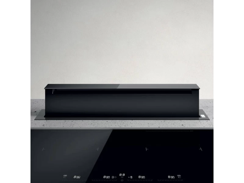 Az Elica PANDORA GME BL/A/90 motor nélküli páraelszívó a modern konyhák egyik legpraktikusabb és legstílusosabb megoldása. A készülék a munkapultba építve rejtve marad, majd egy érintésre motoros mechanikával kiemelkedik, hogy közvetlenül a főzés helyén szívja el a gőzt és a szagokat. A főzés végeztével pedig elegánsan visszasüllyed a pultba, így a konyha megőrzi letisztult, rendezett megjelenését. Ez a kialakítás különösen előnyös, ha a főzőlap az ablak előtt kap helyet, ahol más típusú elszívó beépítése nem lehetséges.