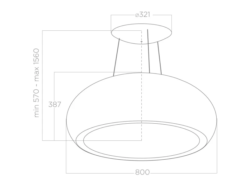 A főzőlap fölött lebegő csillár páraelszívó, amely beszívja a füstöt és feldobja a konyha dizájnját. Fehér, fekete és tükrözött rozsdamentes acél kivitelben kapható.