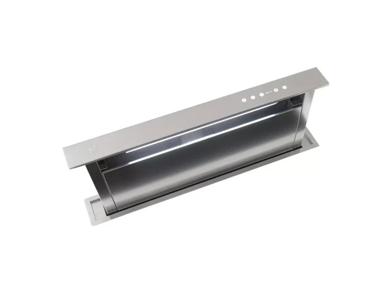 A Sirius S-DD2/L 90 cm LED Inox páraelszívó a letisztult formatervezés és a prémium anyaghasználat tökéletes ötvözete. Rozsdamentes acélból készült, így nemcsak esztétikus, hanem rendkívül tartós és higiénikus is. Pultba építhető kialakítása révén diszkréten simul bele a konyha környezetébe, majd egyetlen érintésre motoros mechanikával finoman kiemelkedik a munkalapból. A főzés végeztével elegánsan visszasüllyed a pultba, megőrizve a konyha rendezett, modern látványát.