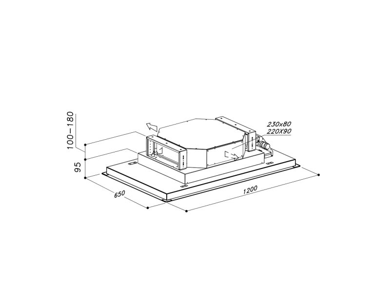SIRIUS SLT-971 LESS TW 4V – Mennyezetbe építhető páraelszívó, 120 cm