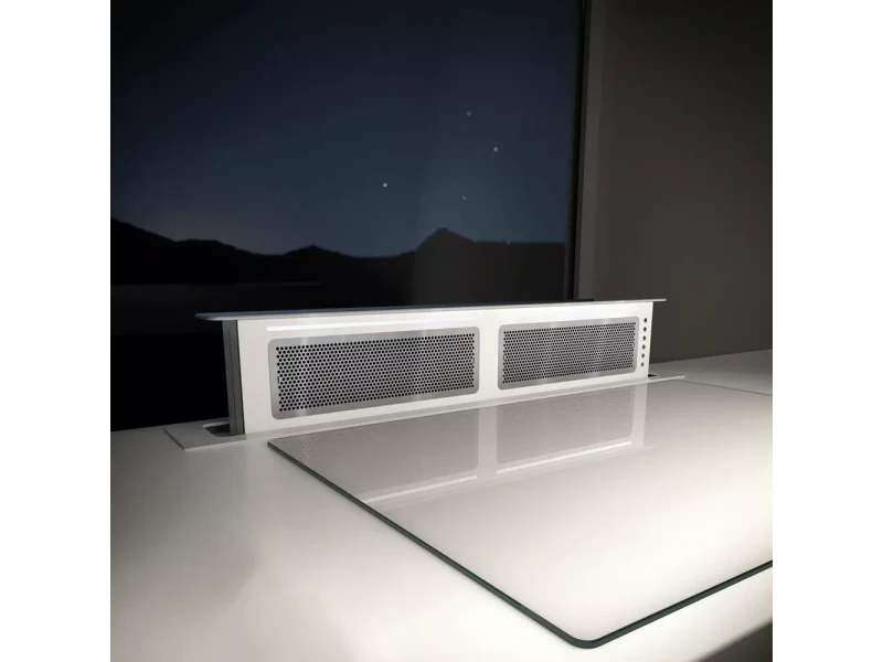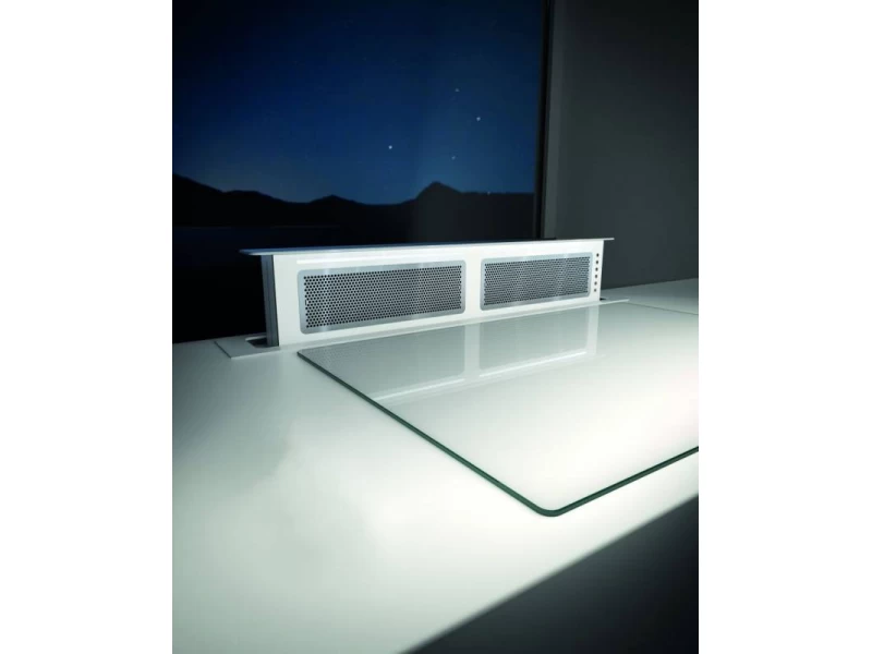 A Sirius S-DD11 PUSH UP EM fehér páraelszívó a modern konyhák egyik legstílusosabb kiegészítője. Pultba építhető kialakítása révén diszkréten simul bele a környezetbe, miközben a fehér üveg előlap és a rozsdamentes acél részletek elegáns megjelenést biztosítanak. A készülék különlegessége, hogy a fedlapot megnyomva lassan, rugós mechanizmussal emelkedik ki a pultból, majd használat után finoman visszatolható. A rugós mechanika lehetővé teszi, hogy a panel lassan, ellenállással záródjon, majd egy kattintással rögzüljön a zárt pozícióban. Ez a megoldás nemcsak praktikus, hanem esztétikai szempontból is kiemelkedő: a konyha tiszta, rendezett látványát őrzi meg.