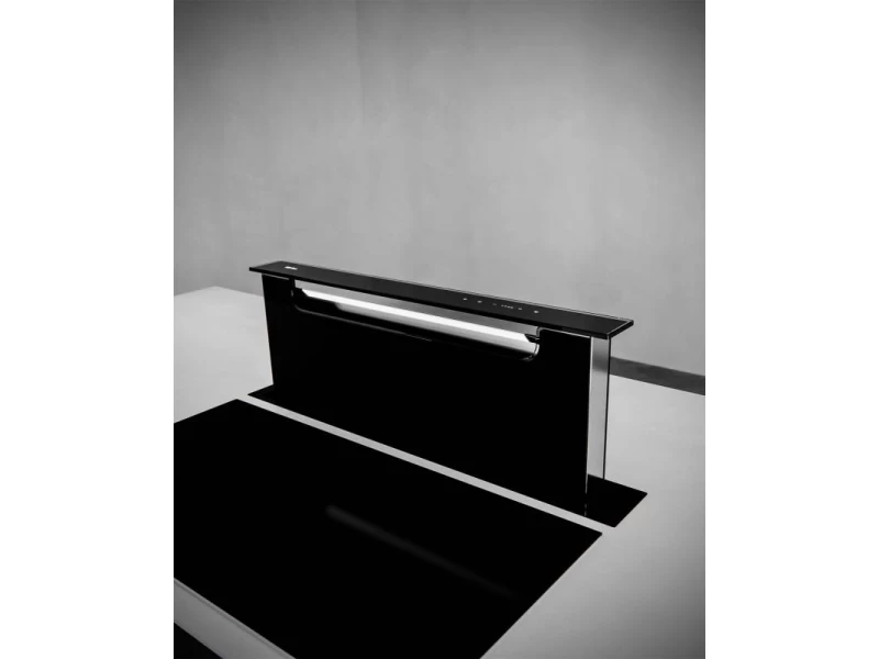 A Sirius S-DD18 BALANCE EM fekete pultba építhatő páraelszívó a modern konyhák egyik legstílusosabb kiegészítője. Fekete üveg előlapja és rozsdamentes acél szerkezete időtlen eleganciát sugároz, miközben pultba építhető kialakítása diszkréten simul bele a környezetbe. Bekapcsoláskor motoros mechanikával finoman kiemelkedik a munkalapból, látványos fókuszt teremtve a konyhában, majd a főzés végén ugyanazzal az elegáns mozdulattal visszasüllyed. Ez a megoldás nemcsak praktikus, hanem esztétikai szempontból is kiemelkedő: a konyha tiszta, rendezett látványát őrzi meg.