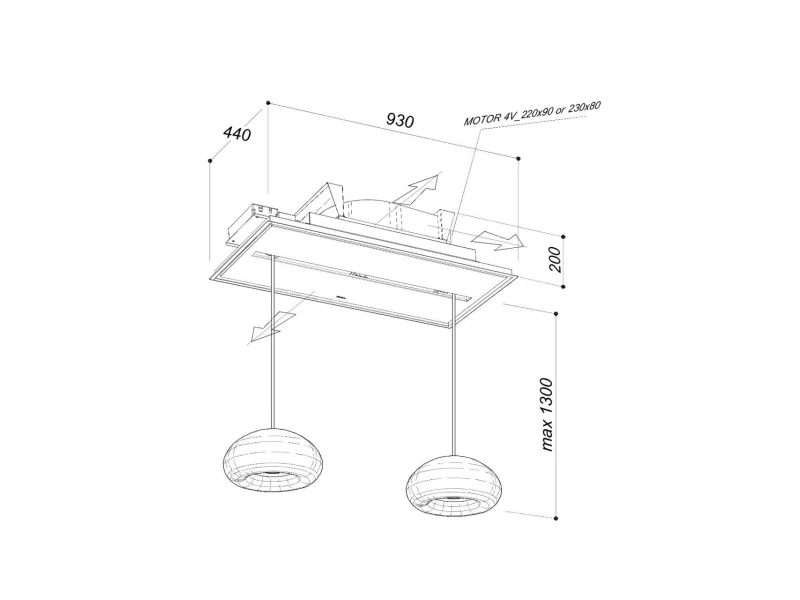 Az SLT-976 Supernova egy mennyezeti páraelszívó, ahol a matt fehérre festett rozsdamentes acélból készült elszívó egység teljesen beépíthető az álmennyezetbe. A derutai kézművesek által kézzel készített és kézzel festett kerámia lámpák tökéletes megvilágítják a főzőlapot. A tervezésnek és a konyhai tervnek megfelelően akár több kerámia lámpa is felszerelhető.