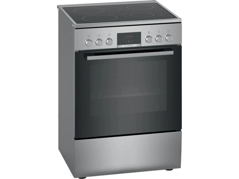 Kerámialapos tűzhely - Serie4 - 60cm - üvegkerámia főzőlap 2 bővíthető főzőzónával - 66l sütőtér - 7 funkciós sütő 3D hőlégbefúvással - nemesacél - Energia Osztály: A - EcoClean hátfal - digitális kijelző TouchControl vezérléssel - 2-szintű teleszkópos sütősín - gyermekzár