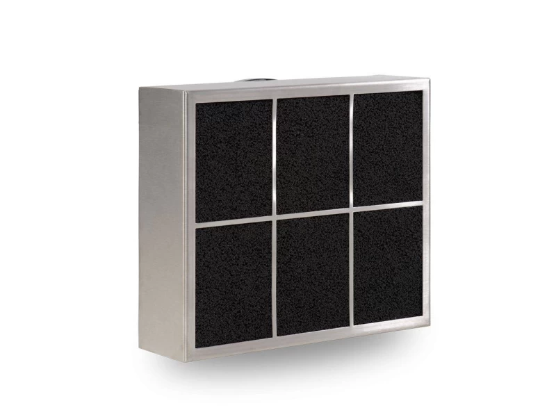 Az utolsó szakaszban lévő szénszűrő minden folyamatnál regenerálódik, tisztán tartja a pórusait, és a páraelszívó teljes élettartama alatt nem kell cserélni.