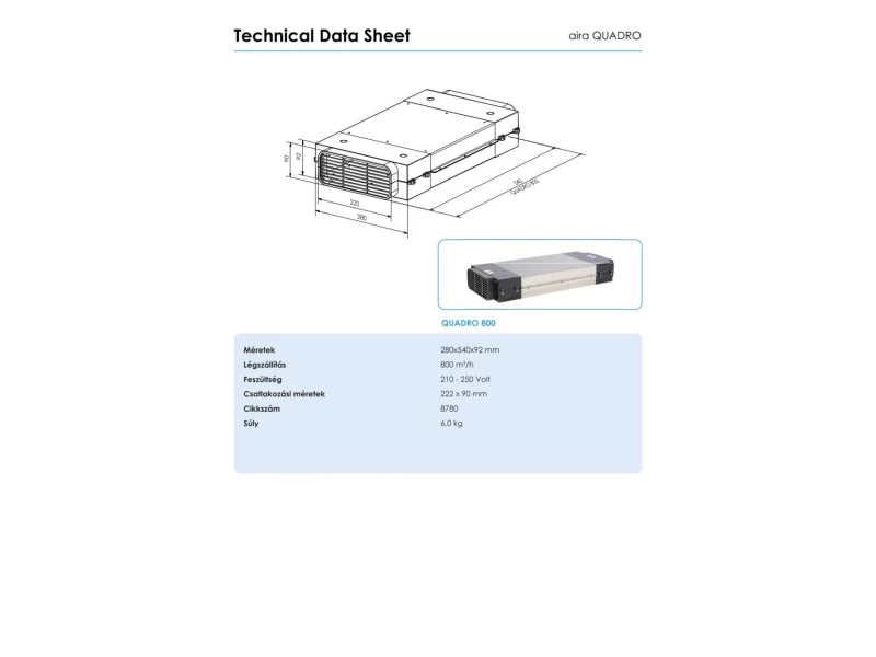 AIRA - Plazma szűrő páraelszívókhoz QUADRO 800 R