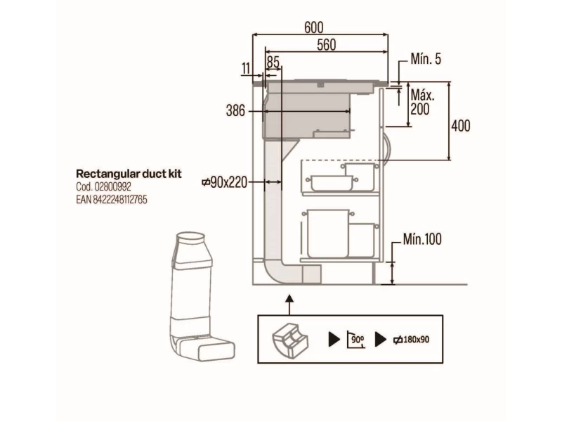 Bekötő szett a cata főzőlapba épített elszívókhoz.