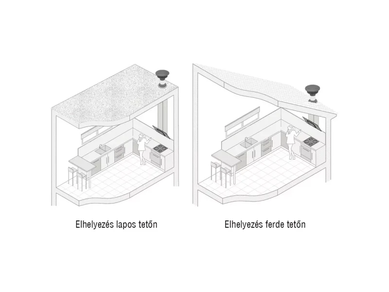 Külső motoros páraelszívó rendszer tervezése és telepítése esetén megfelelő távolságot kell biztosítani a páraelszívó ernyő és az adott külső motor között.