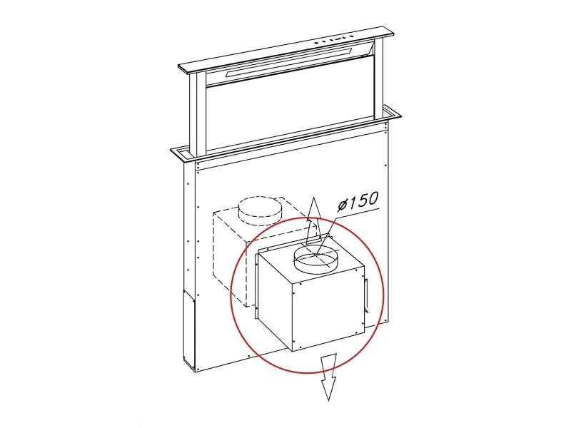 A 150 mm-es csőcsatlakozás a szabványos légtechnikai rendszerekhez illeszkedik, így a telepítés egyszerűen megoldható. A külső motoros kialakítás további előnye, hogy a zajforrás a konyhatéren kívül helyezkedik el, ezáltal a belső térben még nagyobb csend és kényelem valósul meg.